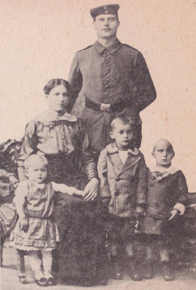 Foto: Familie Helmicki 1918/19 gehörte zu den oberschlesischen Familien , die von Oberhausen nach Borbeck versetzt wurden und als Schmelzer und Zinkzieher mit Hilfe von Werkswohnungen an die Hütte gebunden wurden. Aus „Als die Zinkhütte noch lebte“.