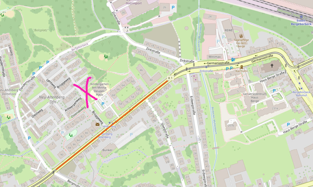 Ja, die Namen waren ja ursprünglich anders. Die sollten ja ursprünglich da stehen, nämlich Zinkstraße, Hüttenstraße und so weiter. Als man dann diese Probleme mit den Schwermetallen hatte, plötzlich verschwanden die Namen und dann hatte man Flandernstraße und so weiter in Erinnerung an die alte Mutter, an die belgische.