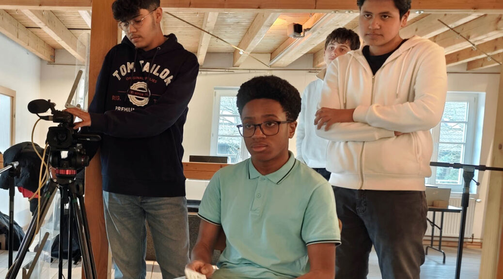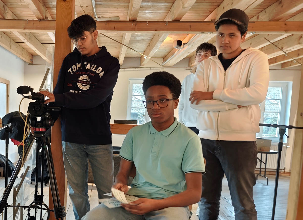 Zum Bild: Die Kamera im Anschlag, der Ton kontrolliert. Dann kann es ja losgehen mit den Interviews Travor (Mitte) trägt die gut vorbereiteten Fragen vor.